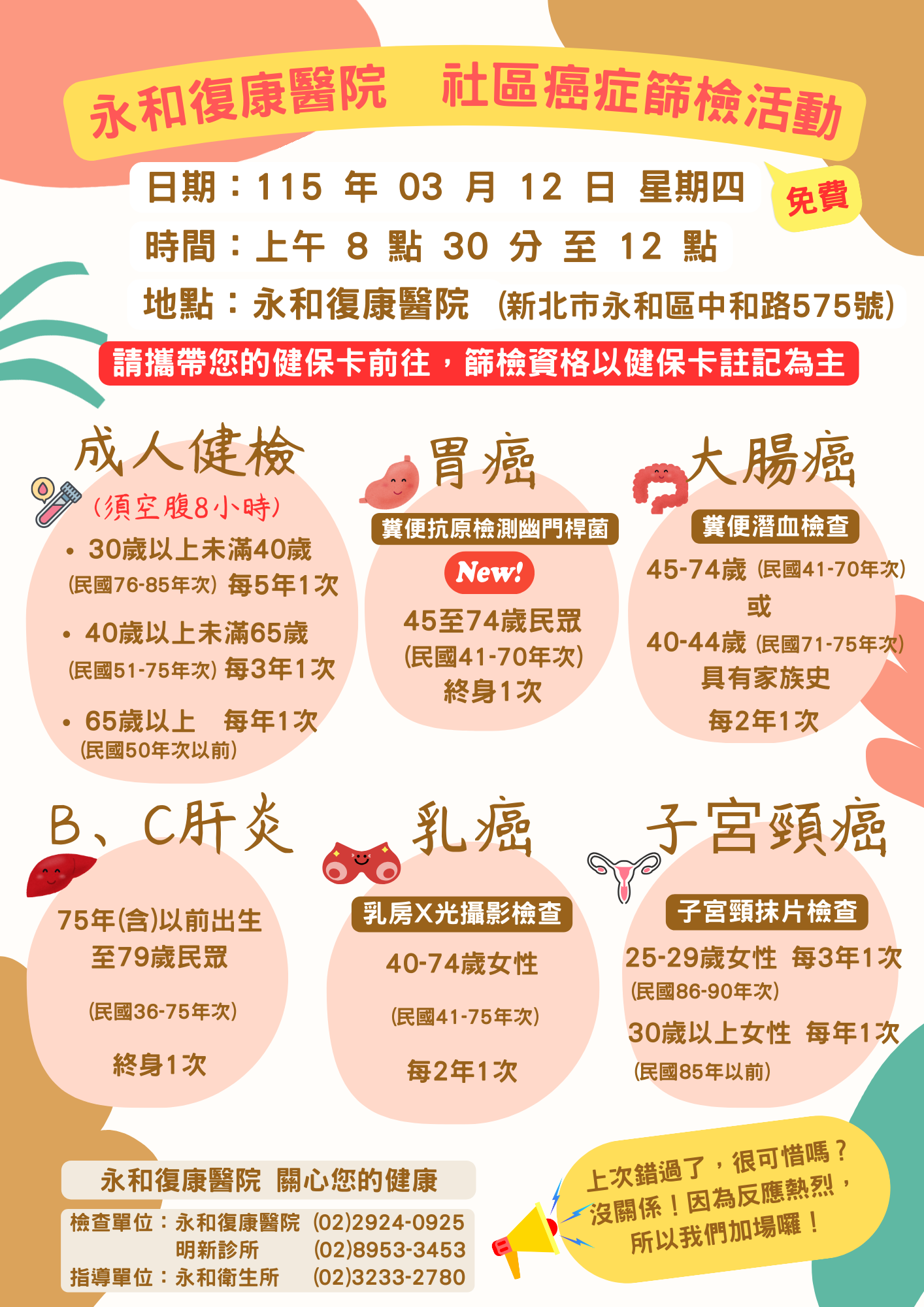 115年03月12日 永和復康醫院社區癌症篩檢活動